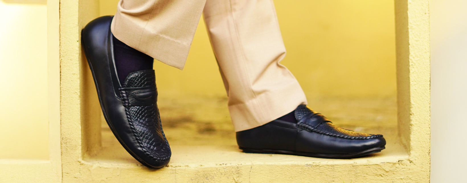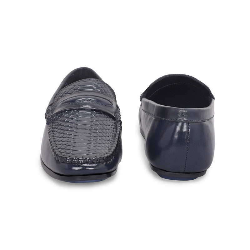 MATR Lifestyle Men’s Blue Leather Woven Moc Toe Loafers
