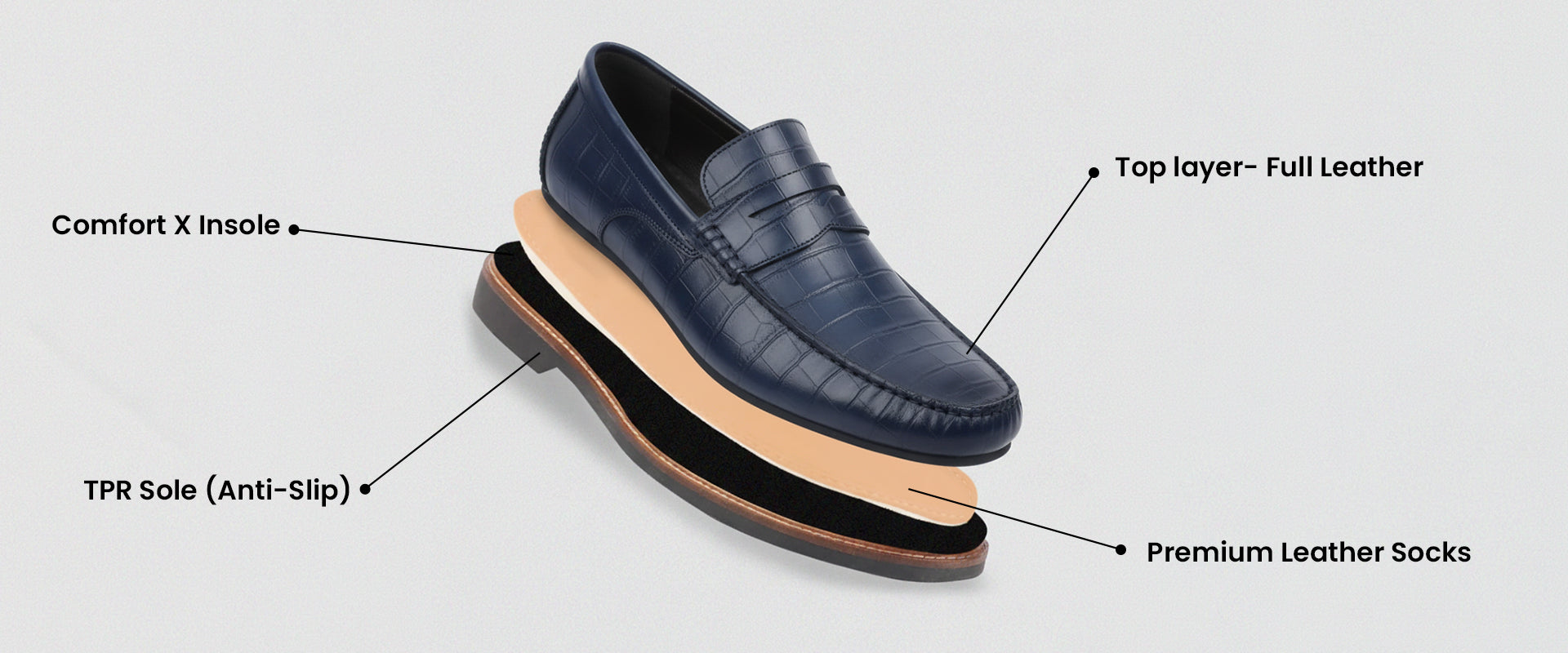 Premium Leather Socks: This layer elevates the internal feel of the shoe. It's a soft, breathable lining that wicks away moisture, creating a comfortable and hygienic environment for the foot, and adding a touch of premium craftsmanship.
