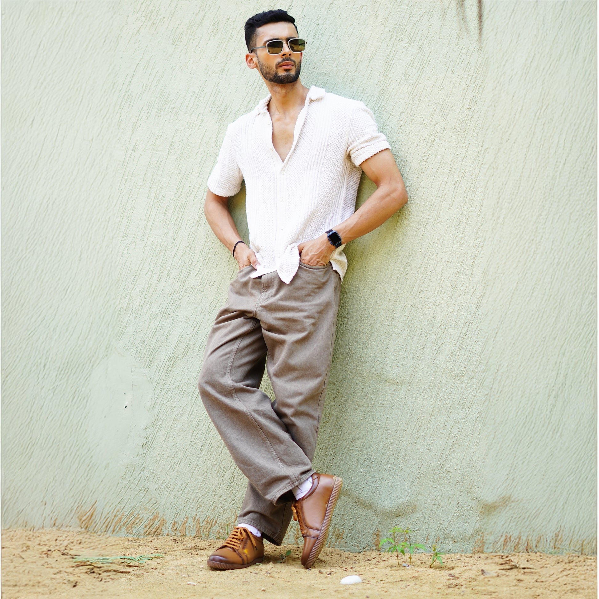 MATR Luxe Men’s Beige Smooth Leather Casual Sneakers