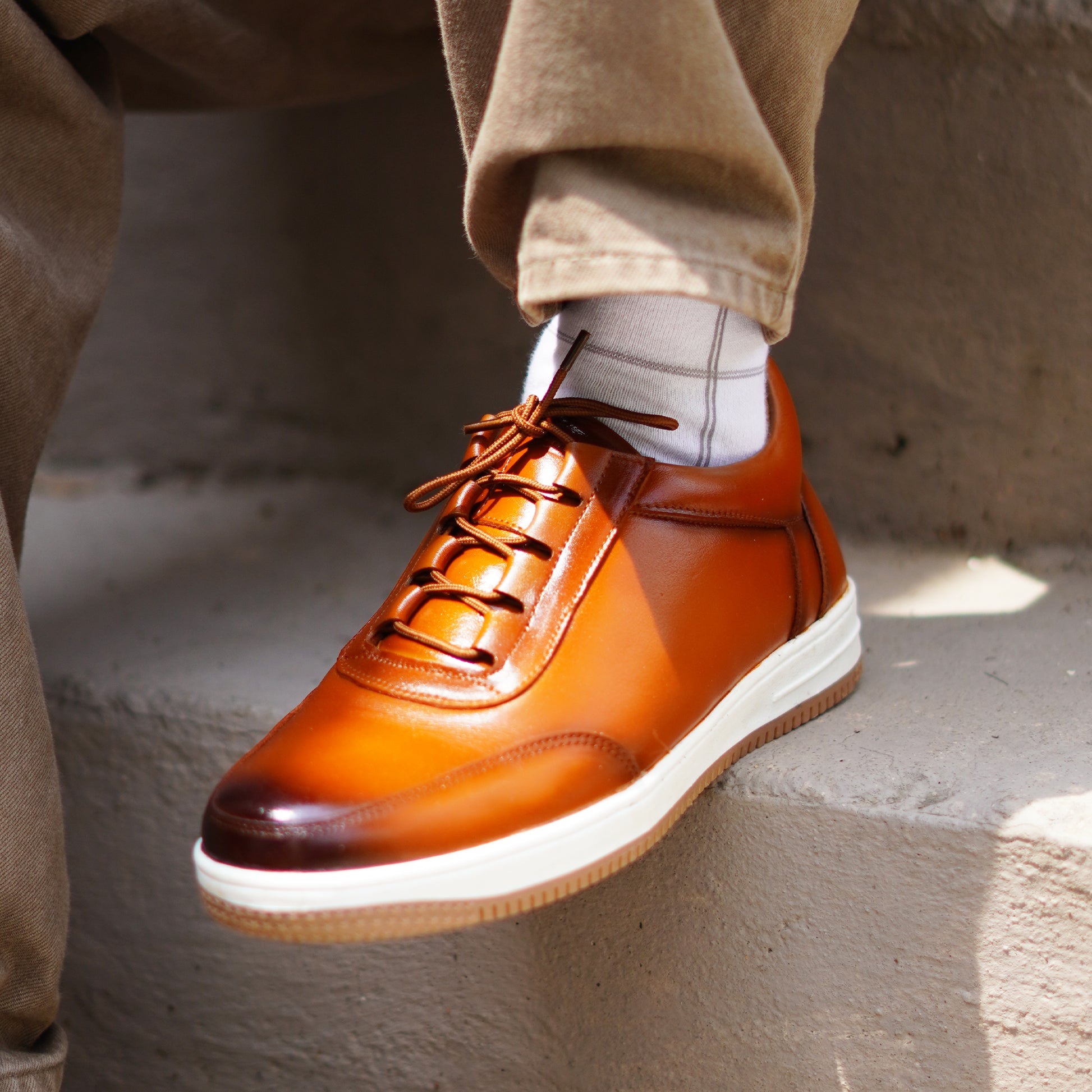 MATR Luxe Men's Tan Leather Casual Sneakers – Elastic Lace's Slip-On with Matching Sole